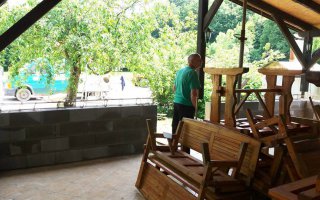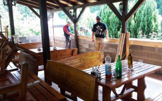 Vsem našim strankam želimo, da se v našem ambientu počutijo udobno, zato smo se odločili, da obstoječo teraso obzidamo. Na terasi lahko sprejmemo skupaj cca. 50 gostov. V kolikor vas pot zapelje v naše kraje Vas vabimo, da posadite pri nas ter poizkusite dobro domačo kapljico in domači Marinkin sladoled.